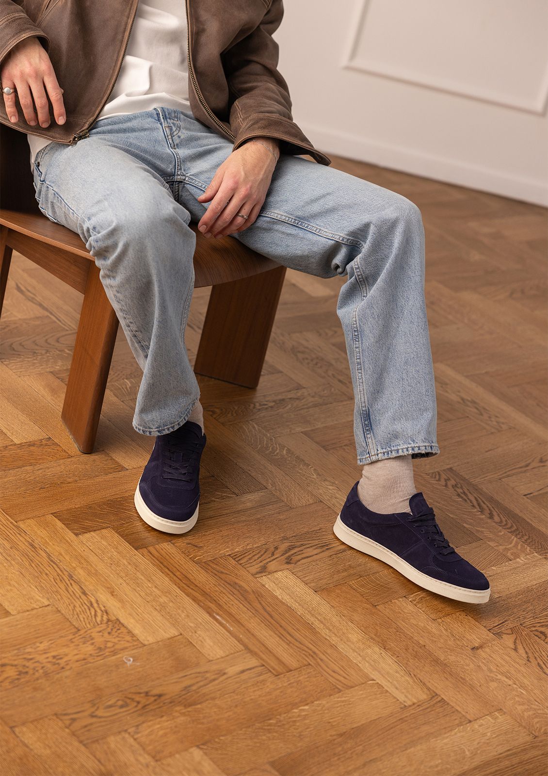 Blaue Veloursleder-Sneaker
