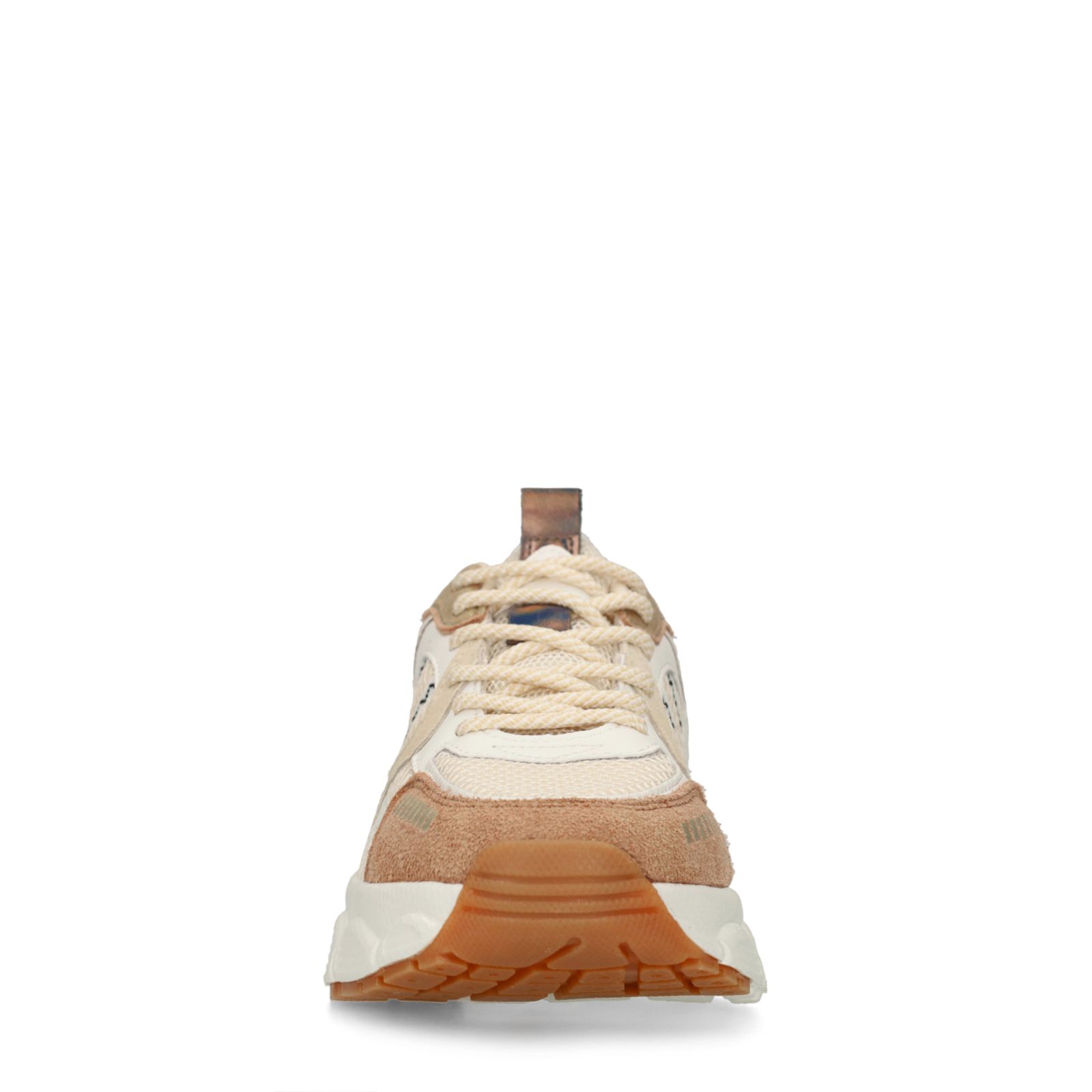 Braune Sneaker mit Mesh-Details in Braun und Weiß der Marke Manfield. Die Sneaker haben eine 5 cm dicke Plateausohle und weiß-beige Schnürsenkel. Als Schuhpflege empfehlen wir das Natural Trendspray.