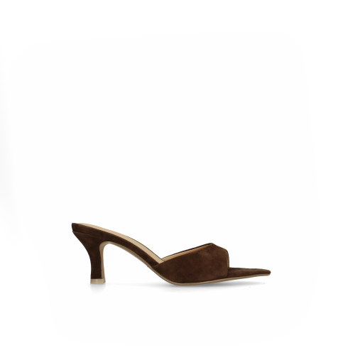 Braune Veloursleder-Pumps der Marke Manfield. Die Pumps haben eine Peeptoe-Kappe und einen 6 cm hohen Absatz. Als Lederpflege empfehlen wir das transparente Veloursleder-/Nubuk-Spray.
