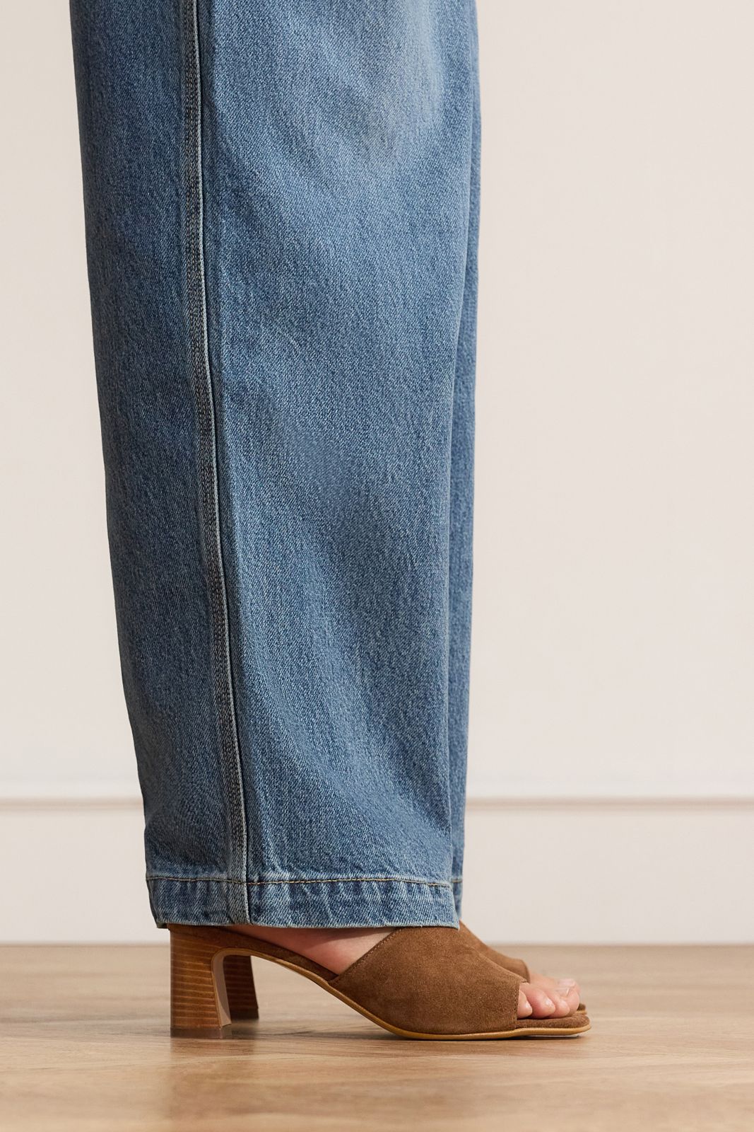 Braune Veloursleder-Sandaletten mit 6 cm hohem Blockabsatz der Marke Manfield. Als Lederpflege empfehlen wir das transparente Veloursleder-/Nubuk-Spray.