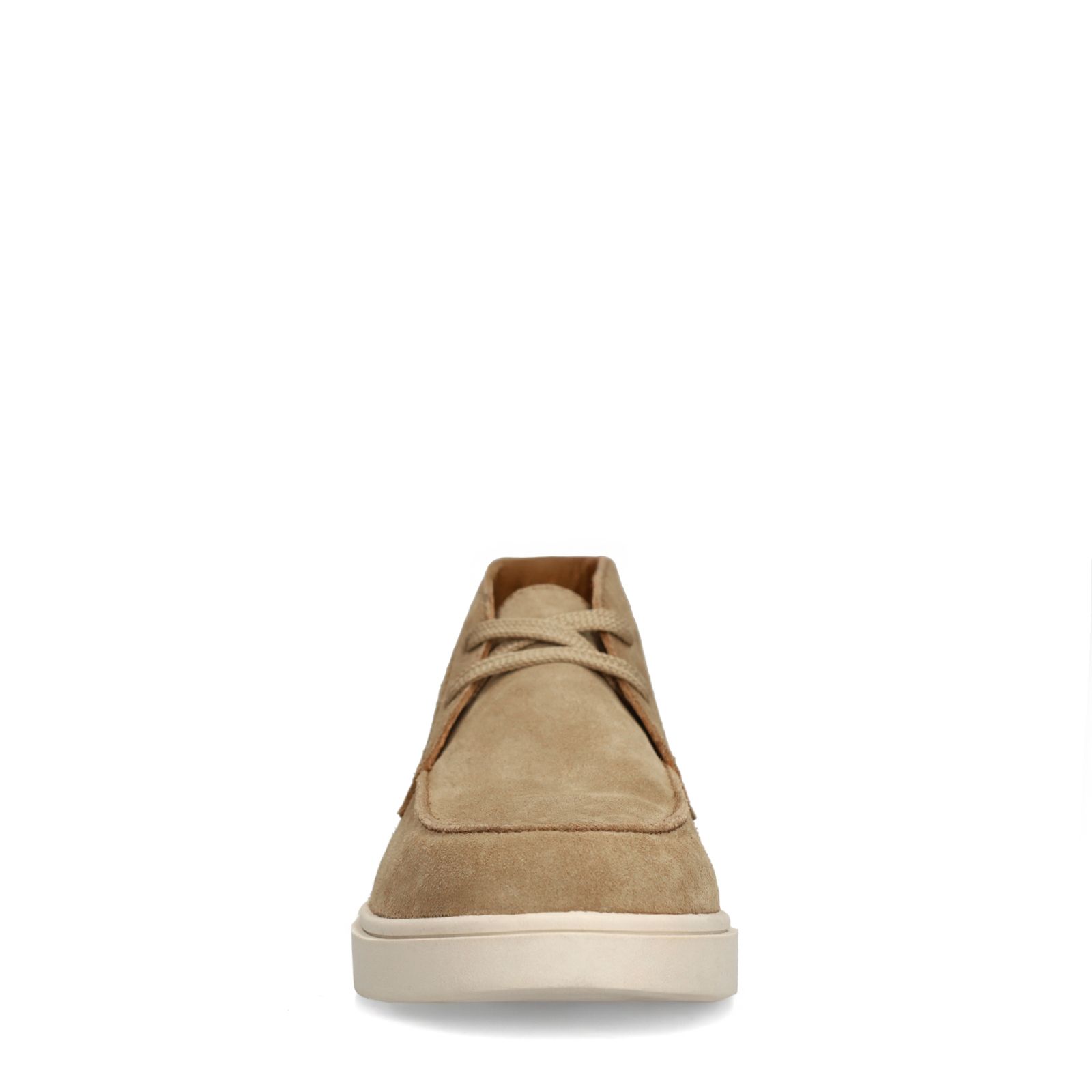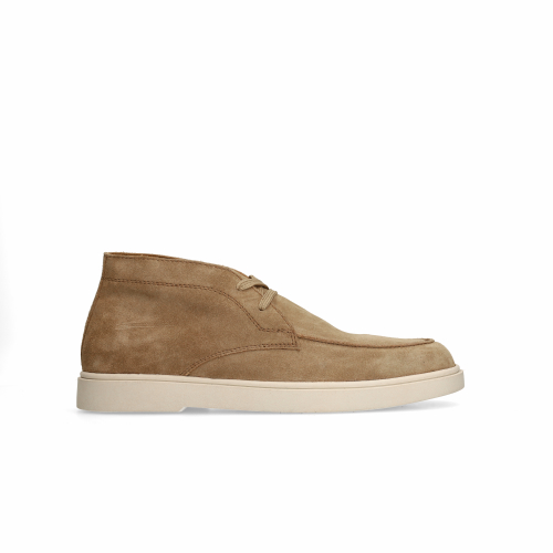 Braune Veloursleder-Schnürschuhe der Marke Manfield. Die Schnürer haben eine weiße 2 cm dicke Sohle. Als Lederpflege empfehlen wir das transparente Veloursleder-/Nubuk-Spray.
