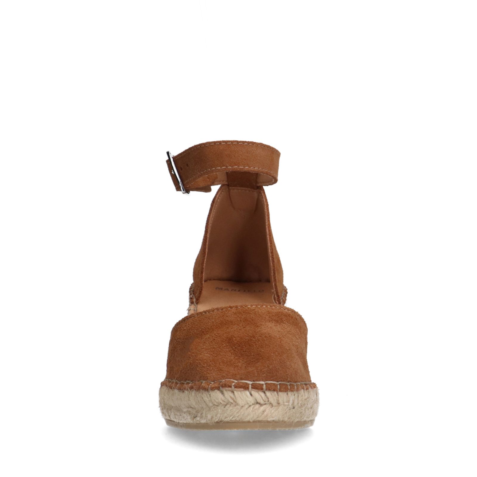 Cognacfarbene Keilsandaletten aus Veloursleder