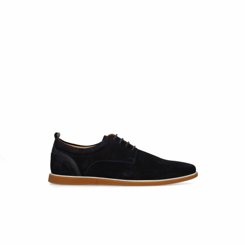 Dunkelblaue Veloursleder-Schnürschuhe der Marke No Stress. Die Schuhe sind mit Leder gefüttert und haben eine 1 cm dicke Sohle. Als Lederpflege empfehlen wir das transparente Veloursleder-/Nubuk-Spray.