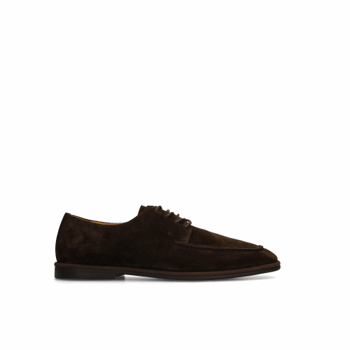 Dunkelbraune Veloursleder-Schnürschuhe der Marke Manfield. Die Schuhe haben einen 3 cm hohen Absatz. Als Lederpflege empfehlen wir das transparente Veloursleder-/Nubuk-Spray.
