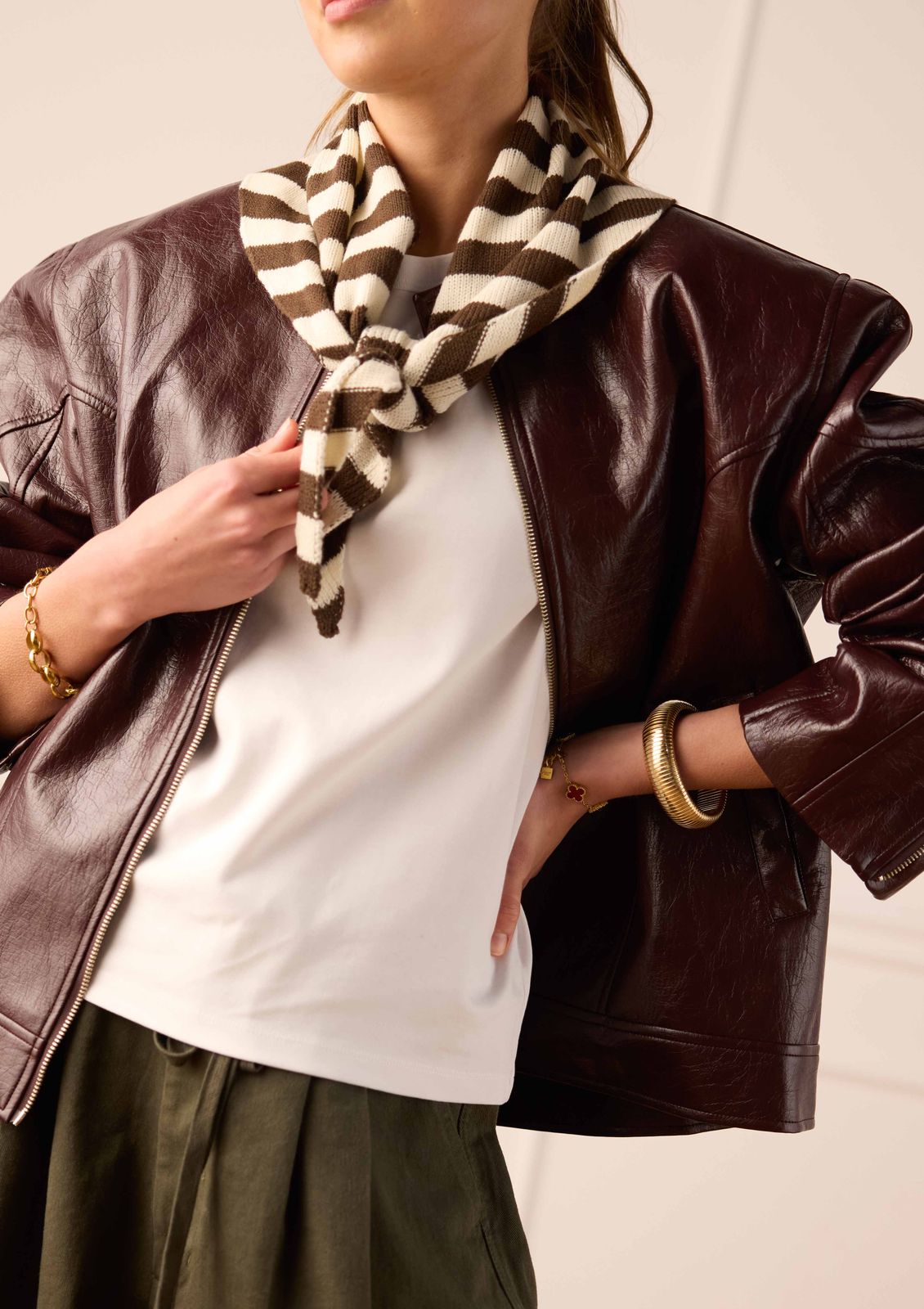 Dreieckstuch mit Streifen in Offwhite und Braun der Marke Manfield. Das Tuch hat eine Länge von 120 cm.