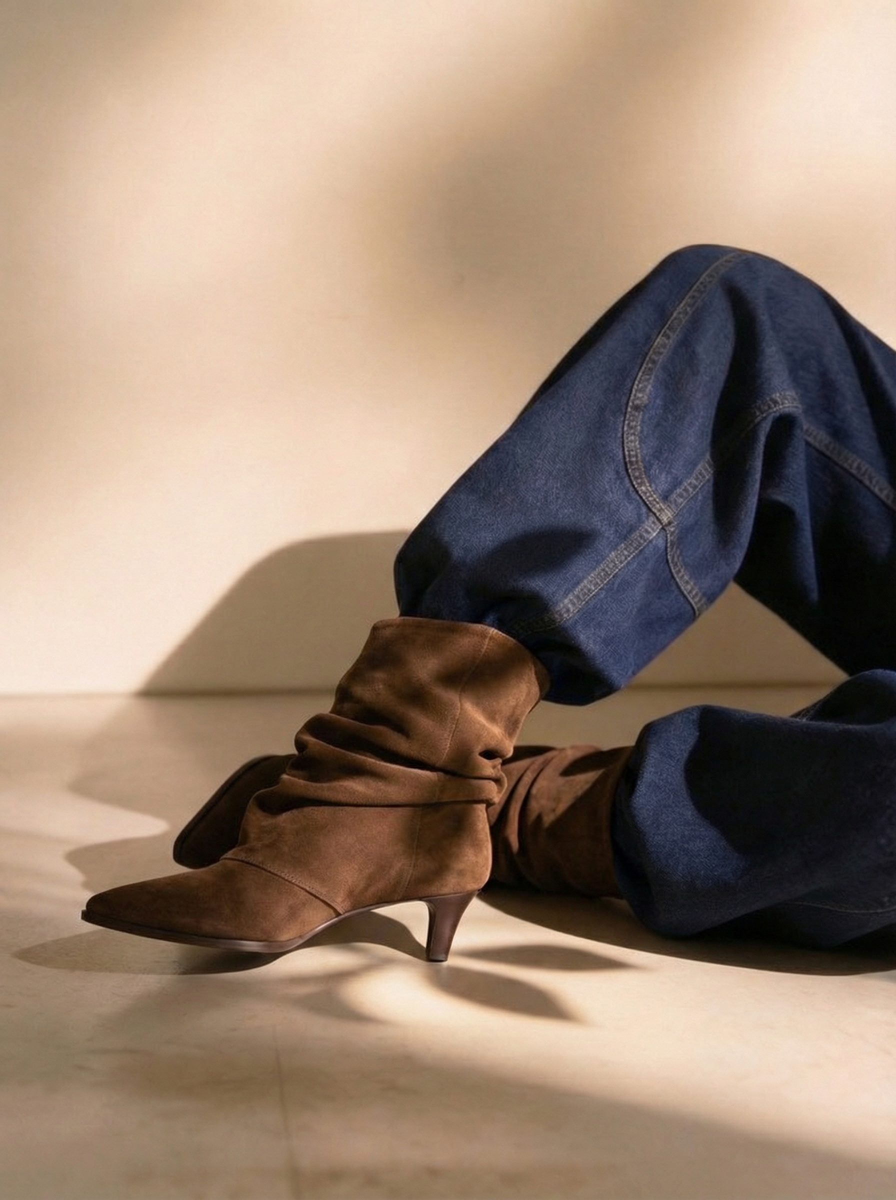 In dieser Saison feiert eine Silhouette ihr großes Revival: der Slouchy Boot. Lässig, feminin und unwiderstehlich chic. Bei Manfield zeigt sich der Trend in seiner elegantesten Form – mit einer schlanken, spitz zulaufenden Silhouette, einem femininen Absatz und edlem Veloursleder in soften Neutral-Tönen.