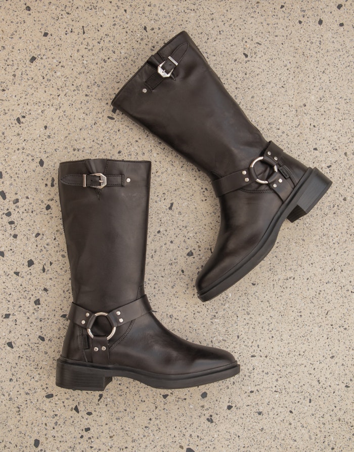 Bei Manfield findest du ein großes Angebot an Damenschuhen, in denen du garantiert stylish durch den Herbst/Winter kommst. Egal, ob du einen eleganten, lässigen oder comfy Look kreieren willst, mit Schuhen von Manfield liegst du immer goldrichtig. Entscheide dich zum Beispiel für das Trend-Item für den Winter: schwarze Biker Boots aus Leder mit silberfarbenen Schnallen. Die Boots sind absolut zeitlos und gleichzeitig trendy, sodass du dich garantiert von der Masse abhebst. Das hochwertige schwarze Leder macht die Stiefeletten zu einer nachhaltigen Wahl, die robuste Sohle sorgt für guten Halt. Das weiche Futter erhöht den Komfort, sodass du problemlos stundenlang in deinen Lieblings-Boots laufen kannst. Kombiniere die Biker Boots für einen lässigen Look zum Beispiel mit einer Jeans und einem Oversize-Blazer oder trage die Stiefeletten für einen edlen Twist zu einem schönen Kleid und einer Strumpfhose. Mit diesen stylishen Boots setzt du ein echtes Mode-Statement.