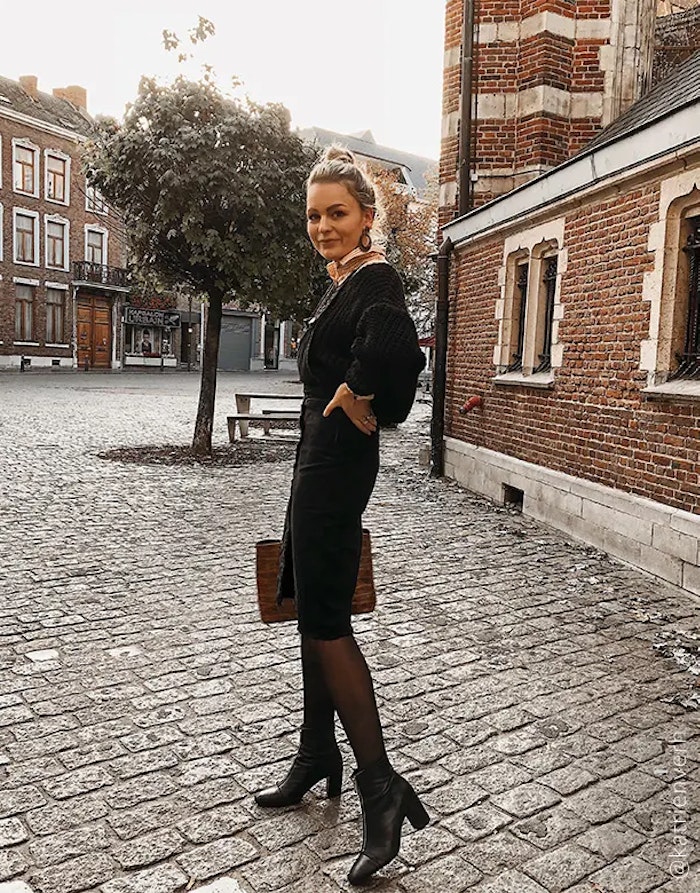 Mit einer Kombi aus kleinem Schwarzen und schönen schwarzen Stiefeletten liegst du natürlich nie daneben. Auch ein Midi-Kleid zu schwarzen Stiefeln sieht einfach umwerfend aus. Entscheide dich für Stiefeletten mit einer spitzen Form und tollen Details wie zum Beispiel Schnallen oder einem auffälligen Reißverschluss, um deinem Look ein wenig Biss zu verleihen.
