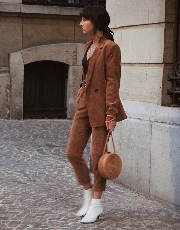 Für einen modisch-schicken Look kombinierst du zum Beispiel elegante Stiefeletten oder schöne Pumps zu einem trendy Hosenanzug. Entscheide dich für einen Anzug mit Flared Pants oder einer Hose im High-Waist-Style. Ein bisschen zu viel des Guten? Dann gib dem Ganzen mit einem lässigen T-Shirt einen casual Touch. Das Shirt sorgt für einen spannenden Kontrast, ohne dem Outfit den Glamour zu nehmen.