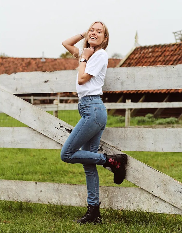 Lässt das Wetter es noch nicht zu, um ein schönes Kleid oder einen Rock zu tragen? Dann entscheide dich für eine helle Denim Jeans, einen Oversize-Pulli und schwarze Biker Bootsmit einer markanten Schnürung.
