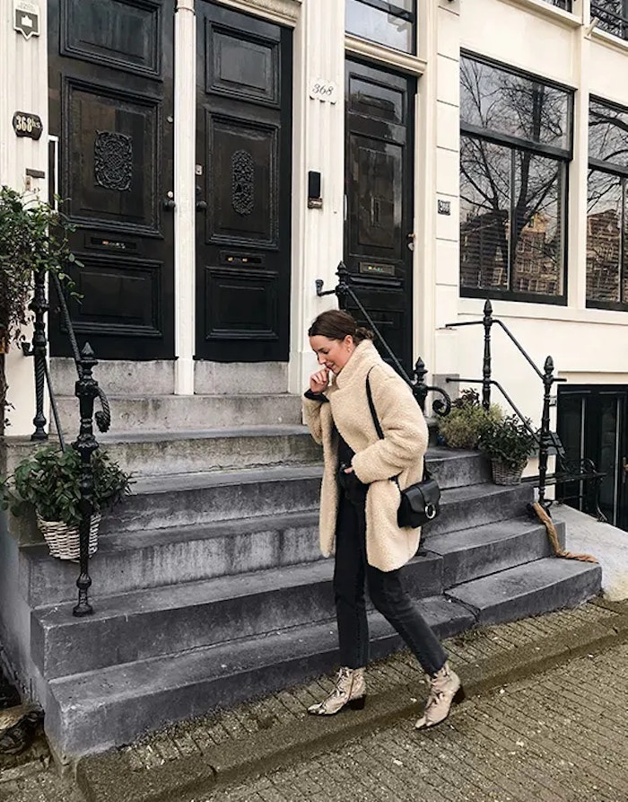 Beim Styling von Schuhen mit Schlangenmuster gilt: Weniger ist mehr! Die auffälligen Schuhe eignen sich jedoch perfekt, um einem Basic-Outfit mehr Biss zu geben. Kombiniere deine Snakeskin-Schuhe diesen Herbst mit einer schwarzen Jeans und einem oversized Teddy oder Camel Coat und dein Look ist garantiert fashionable.