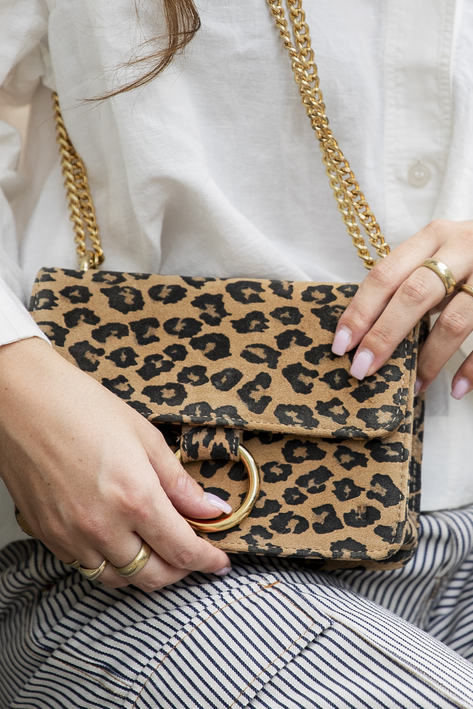 Stylen Sie Ihre Leopard-Sneakers mit einer dunkel gewaschenen Jeans, einem weißen Basic-Übergroßen-Shirt und einem Blazer darüber. Oder entscheiden Sie sich für einen eleganteren Look und kombinieren Sie die Mary Jane Ballerinas mit einer weit fallenden schwarzen Hose und einem Wollpullover. Möchten Sie ein kleines Leoparden-Detail in Ihr Outfit einfügen? Wählen Sie dann ein Accessoire wie eine Haarspange, Geldbörse oder Tasche.