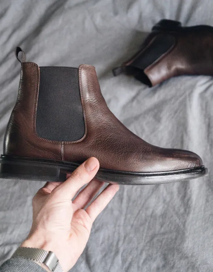 Wenn Business-Schuhe zu schick und Sneaker zu salopp sind, kann ein Chelsea Boot genau die richtige Wahl sein. Da die Boots keine Schnürsenkel haben, passen sie perfekt zum minimalistischen, schlichten Kleidungsstil, der sich immer größerer Beliebtheit erfreut. Zudem sind sie vielseitig und lassen sich mit allerlei Stilen kombinieren. Zu einer schwarzen oder einer Dry-Denim-Jeans machen sie eine ebenso gute Figur wie zu einer Wollhose. Mit diesen Schuhen liegst du also nie daneben – auch nicht, wenn du sie im Büro zu einer schönen Stoffhose oder am Wochenende zu einer dunklen Jeans trägst. Sobald das Leder Gebrauchsspuren bzw. einen Used-Look aufweist, würde ich sie persönlich weniger schnell zu einer Stoffhose tragen, dann passen sie jedoch perfekt zu einer schicken Jeans.