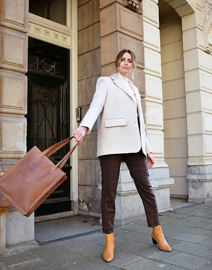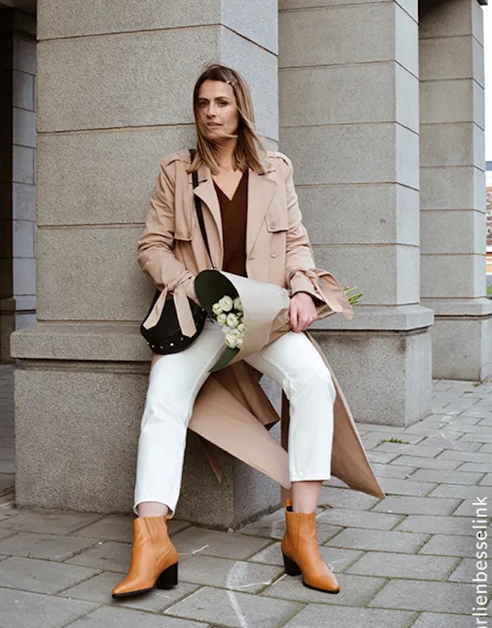 Weiße Hosen sind diese Saison wieder ganz aktuell und lassen sich toll zu ockergelben Schuhen kombinieren. Während das Weiß für eine ruhige Basis sorgt, geben gelbe Schuhe (oder Accessoires) dem Look mehr Biss.