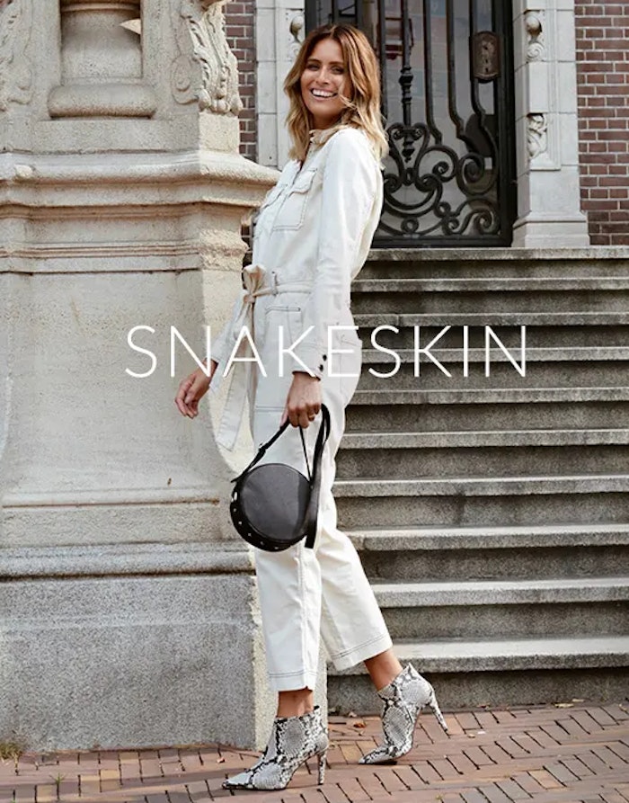 Snakeskin-Items bzw. Schlangenmuster sind der Animalprint für 2019. Während wir letztes Jahr nicht ohne Leo-Prints auskamen, führt in diesem Jahr kein Weg an Schlangenmustern vorbei. Ob auf Kleidung, Accessoires oder aber Schuhen. Entscheide dich für stylishe Stiefeletten mit Snakeskin-Print oder lässige Biker Boots mit Schlangenmuster und du liegst garantiert im Trend. Sind dir Schuhe mit Animalprint ein wenig zu viel des Guten? Dann sind ein schöner Gürtel oder eine Tasche mit Schlangenmuster eine tolle Alternative.