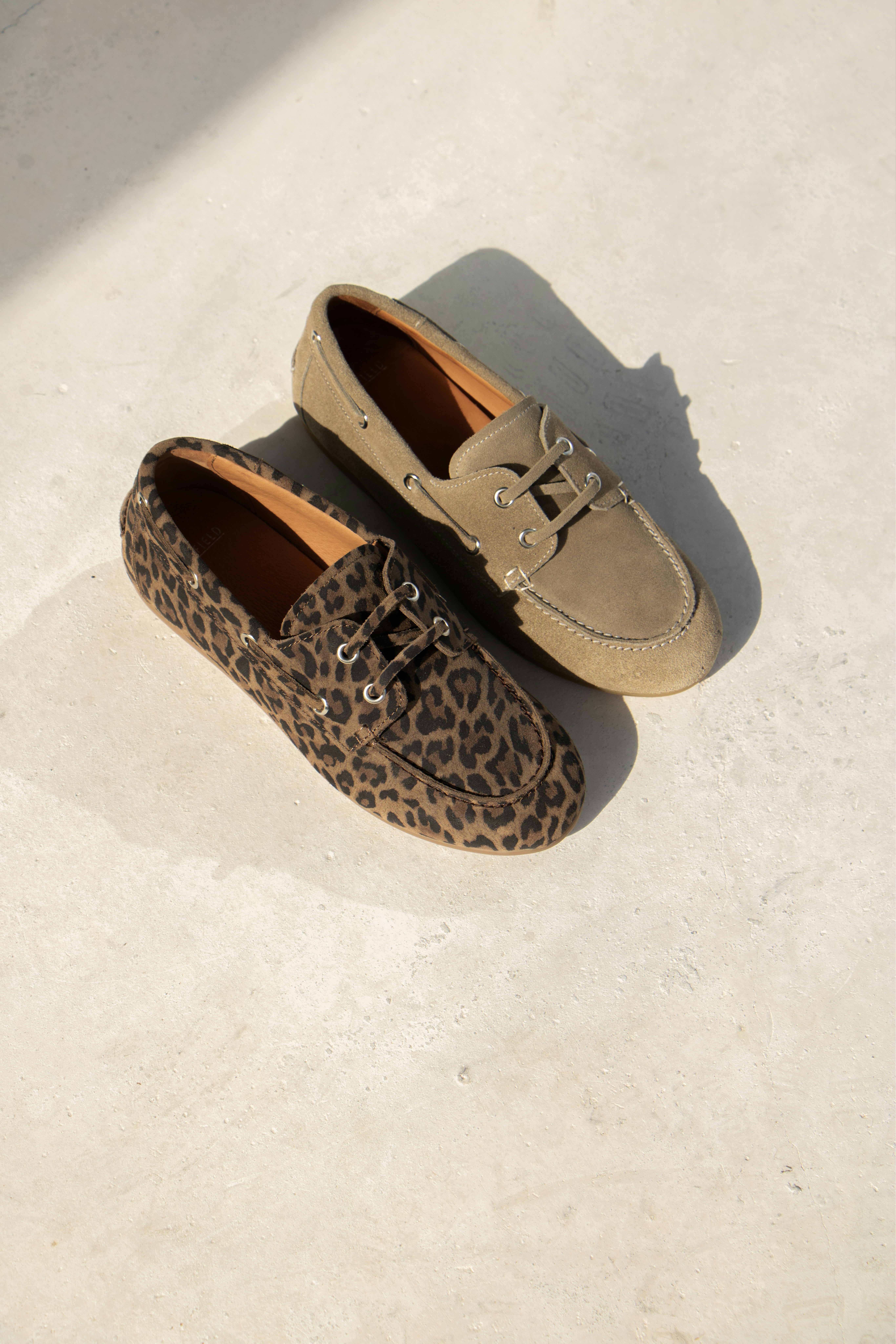 Nichts ist so sommerlich wie legere Espadrilles − und in Wildleder-Ausführung wirken sie besonders elegant. Von Schuhen in warmem Bordeauxrot, cleanem Beige oder Cognacbraun bis hin zu Modellen mit Details aus natürlichem Bast oder Jute. Veloursleder-Espadrilles sind sophisticated und ein Go-to-Basic für sommerliche Strandtage und Datenights. Kombiniere sie für einen unangestrengten Look mit einem Maxi-Kleid oder einer Cropped Jeans. Bevorzugst du schöne Loafer? Klassische Loafer sind immer eine gute Wahl, wenn du einen stylishen Sommerlook kreieren willst. Der Favorit unser Manfield-Designer? Die cognacfarbenen Veloursleder-Loafer mit silberfarbenen Details und die Leoprint-Loafer mit goldfarbener Kette.