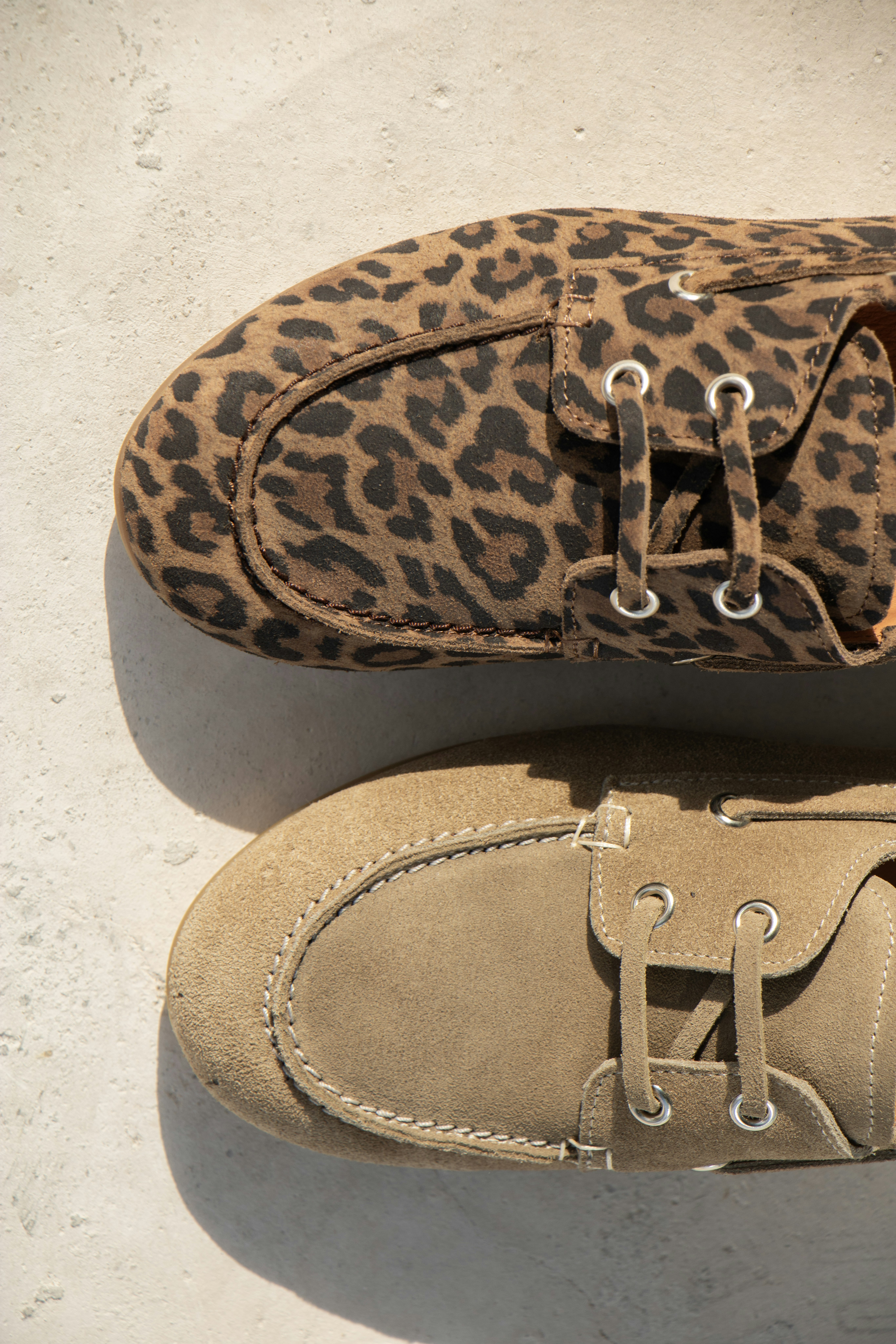 Bootsschuhe sind zurück − doch diesmal mit einem sommerlichen Twist. Veloursleder lässt die Schuhe weich, leicht und stylish wirken wie nie zuvor. Entscheide dich für ein Modell in sanften Naturtönen wie Beige und Braun oder mit angesagtem Animalprint und kombiniere die Slipper mit lässig-edlen Leinen- oder Bermudashorts. Der perfekte Mix aus casual und chic.