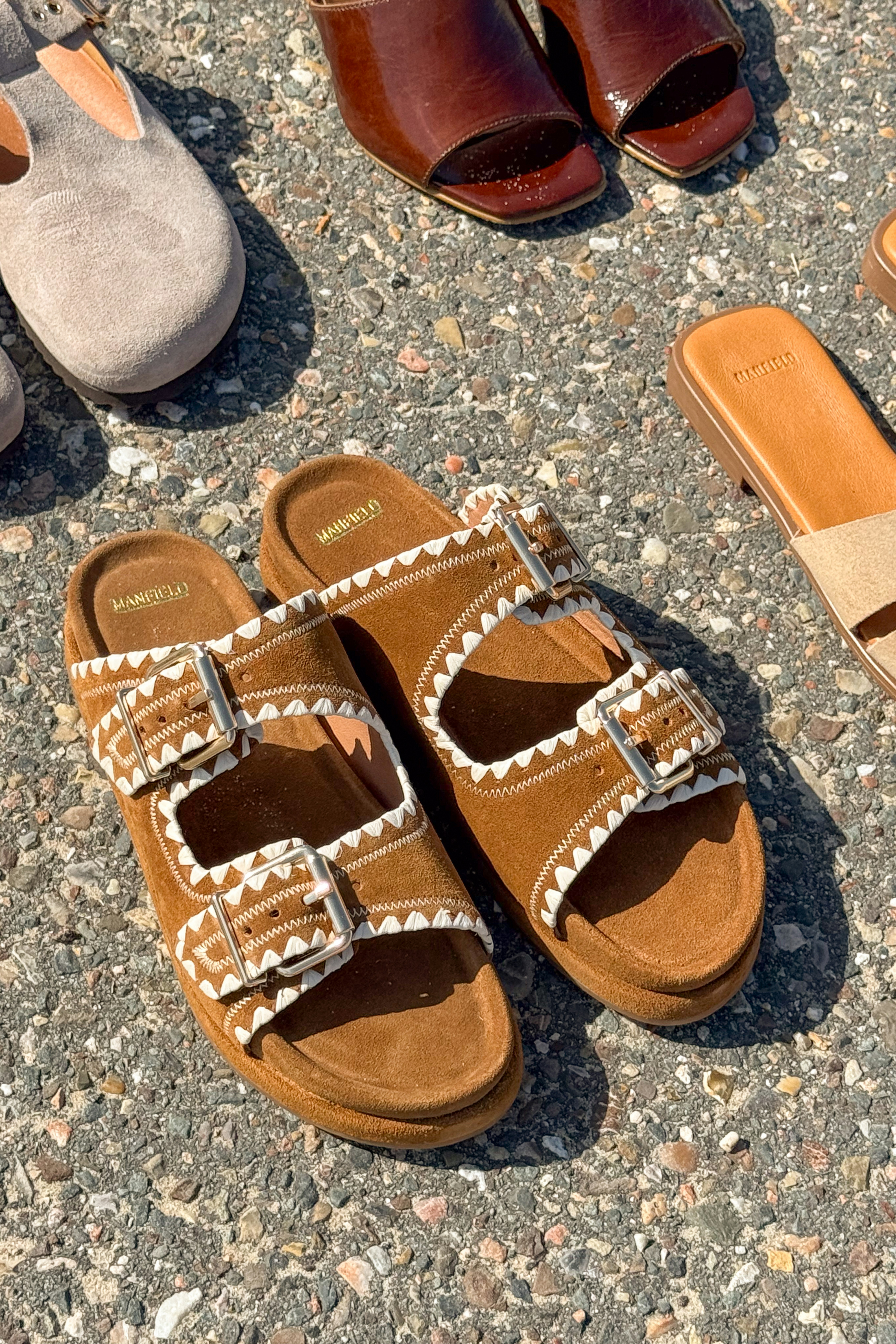 Die sommerlichen Pantoletten und Sandalen aus Wildleder von Manfield sind nicht nur comfy, sondern auch chic und stylish. Das weiche Leder verleiht den schlichten Pantoletten und Sandalen einen edlen Look. Von subtilen Riemchen bis hin zu lässigen Modellen mit Schnallen. Suede Lovers können wählen aus schlichten Sandalen in neutralen Tönen und Eyecatchern in Rot, Rosa oder Gelb. Veloursleder-Clogs sind die perfekten Slip-ons, um deinem Sommerlook eine verspielte Note zu verleihen.