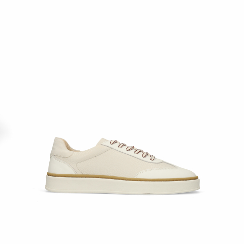 Offwhite Ledersneaker der Marke Manfield. Die Sneaker haben Schnürsenkel und eine weiße 3 cm dicke Sohle. Die Innensohle ist herausnehmbar. Als Schuhpflege empfehlen wir das transparente Veloursleder-/Nubuk-Spray.