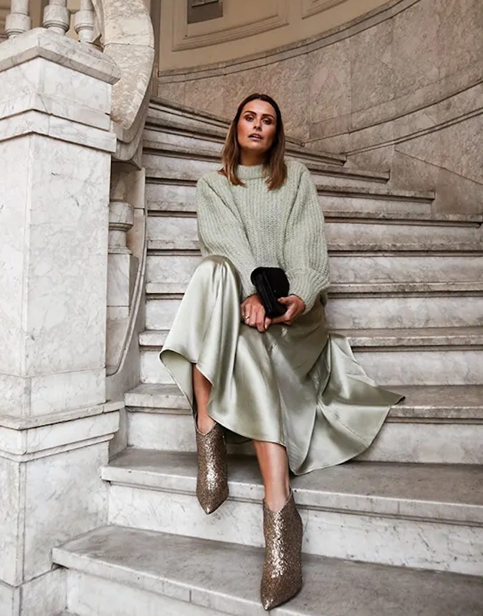 Bist du auf der Suche nach dem idealen Outfit für einen Weihnachts-Brunch? Dann entscheide dich für einen herrlich weichen Pullover, den du schick stylst, indem du ihn mit einem glänzenden Rock und Statement-Stiefeletten kombinierst. Dieser Look ist nicht nur feierlich, sondern auch superbequem. Eine echte Win-win-Situation! Mit einem Ton-sur-Ton-Look wirkt dein Outfit sogar noch stylisher.