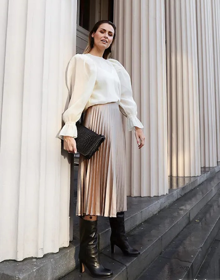 Hohe Stiefel sind auch an den Feiertagen eine stylishe Wahl. Entscheide dich für ein Modell mit besonders hohen Absätzen und du setzt ein echtes Statement. Kombiniere die Stiefel an den Feiertagen für ein schickes Outfit mit einem Plisseerock und einer schönen Bluse. Runde den Look mit einer Clutch in der gleichen Farbe wie die Stiefel ab und dein Outfit wirkt besonders stimmig und edel.