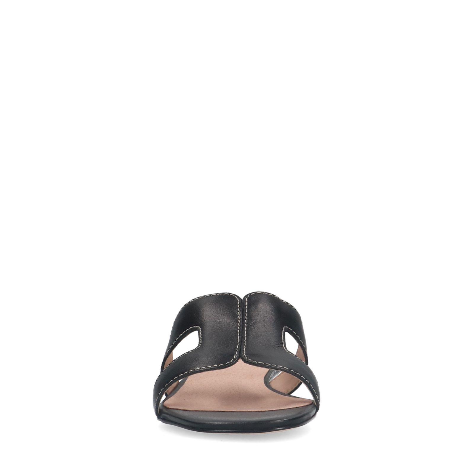 Schwarze Ledersandalen der Marke Manfield. Die Flats haben einen 1 cm hohen Absatz. Als Schuhpflege empfehlen wir das Carbon Pro-Spray von Collonil.