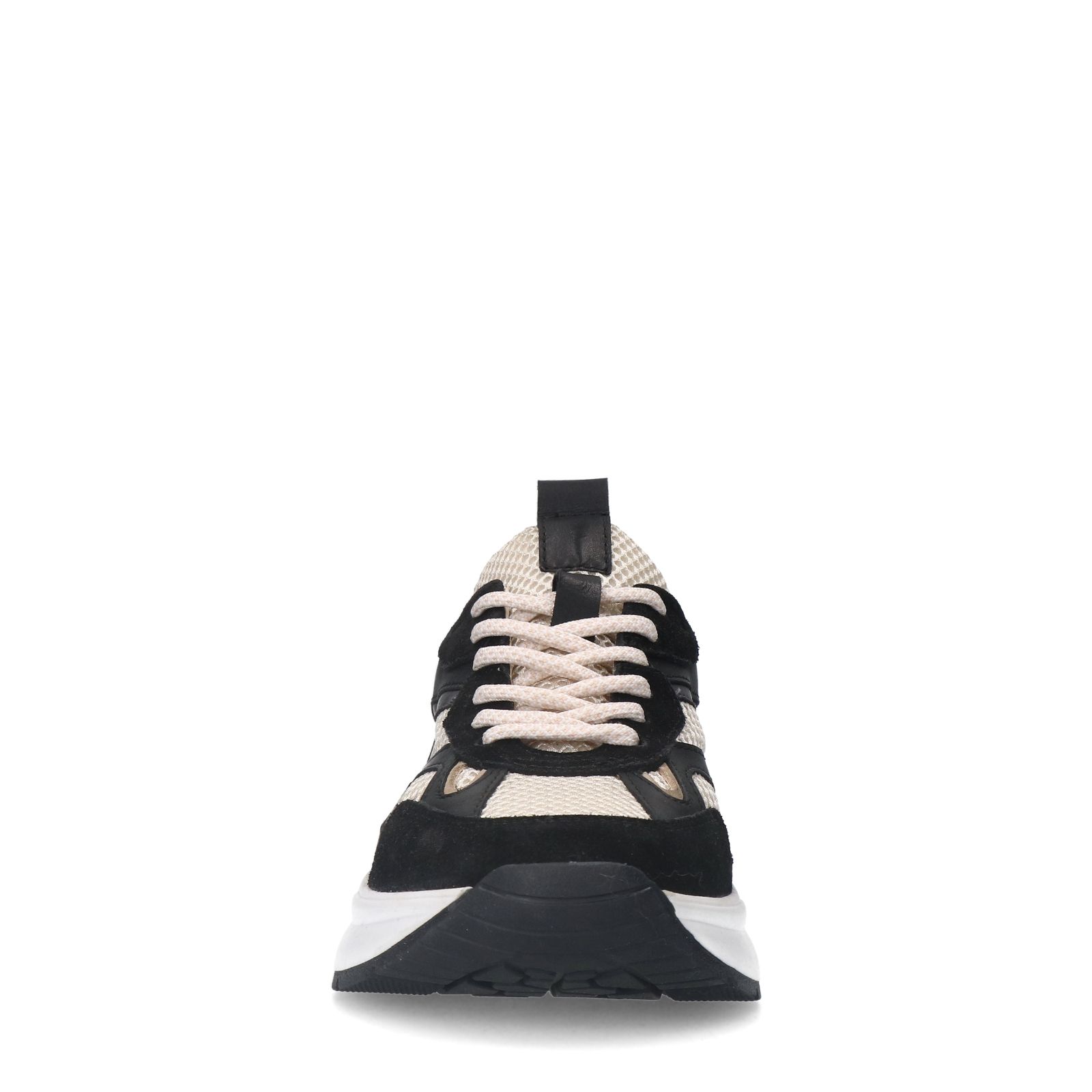 Schwarze Ledersneaker der Marke Manfield. Die Sneaker sind mit Mesh-Details abgesetzt und haben eine weiße 4 cm dicke Plateausohle. Als Schuhpflege empfehlen wir das Carbon Pro-Spray von Collonil oder das Natural Trendspray.