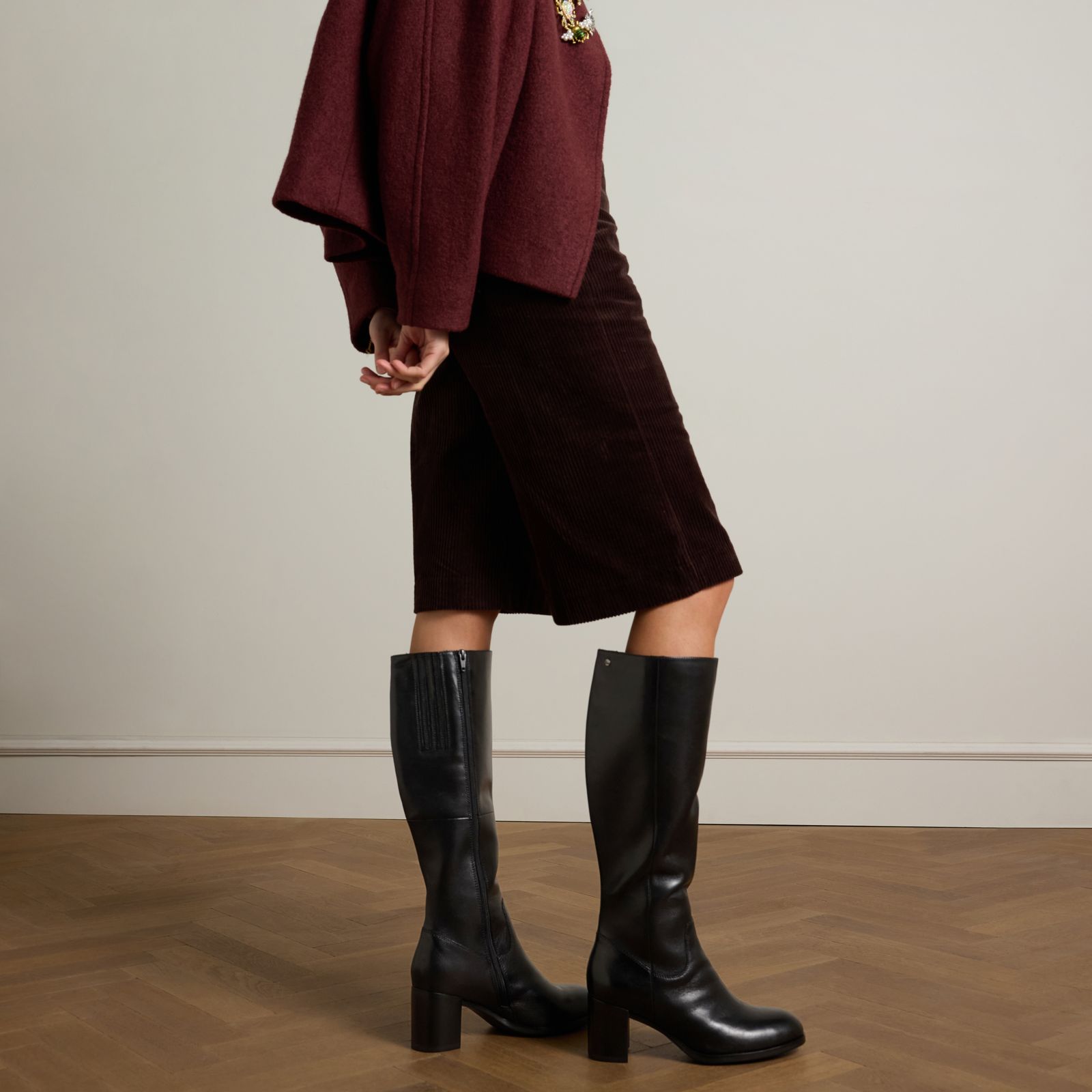 Schwarze Lederstiefel mit Absatz der Marke No Stress. Die Stiefel haben einen 7 cm hohen Blockasatz, eine Schafthöhe von 41 cm, einen Schaftumfang von 36 cm und einen praktischen Reißverschluss auf der Innenseite des Schaftes. Als Schuhpflege empfehlen wir das Carbon Pro-Spray von Collonil.