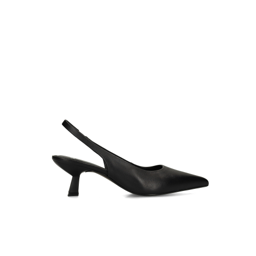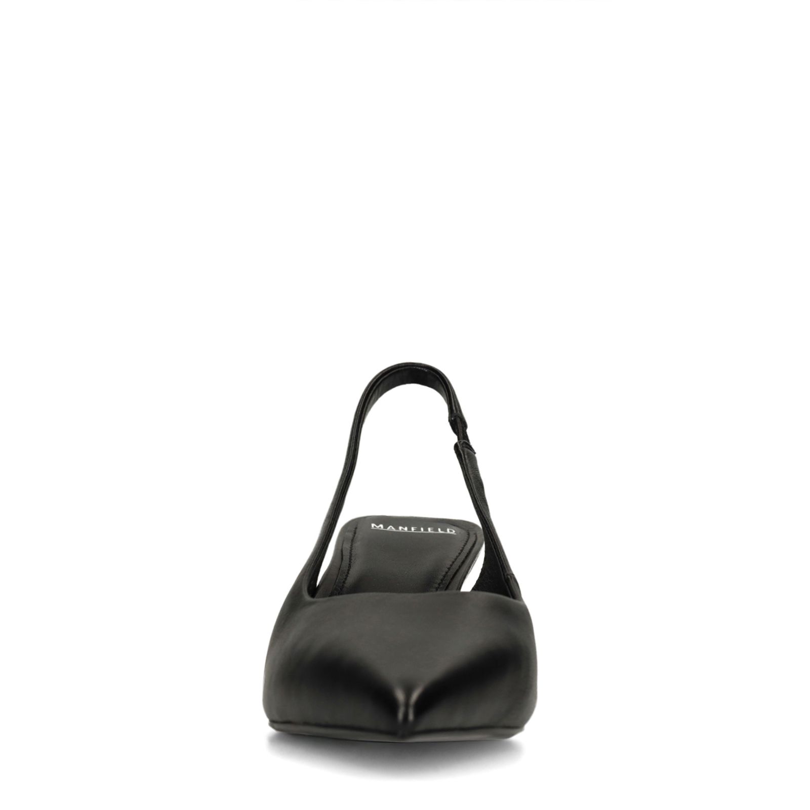 Schwarze Slingbackpumps aus Leder der Marke Manfield. Die Pumps haben einen 6 cm hohen Absatz und eine spitze Kappe. Als Schuhpflege empfehlen wir das Carbon Pro-Spray von Collonil.