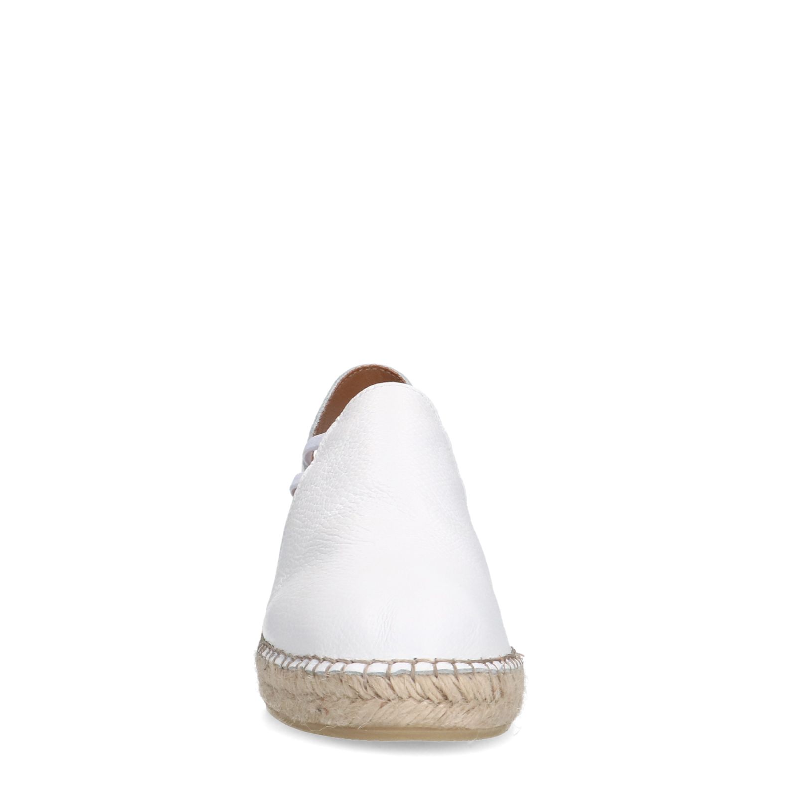 Weiße Keilsandaletten der Marke Manfield. Die Schuhe sind aus Leder gearbeitet. Wir empfehlen das Material mit dem Carbon Pro-Spray von Collonil zu pflegen. Der Absatz der Wedges ist 5 cm hoch und mit sommerlichen Jute-Details versehen. Die elastischen Riemchen und das Knöchelriemchen sorgen für besonders guten Halt.